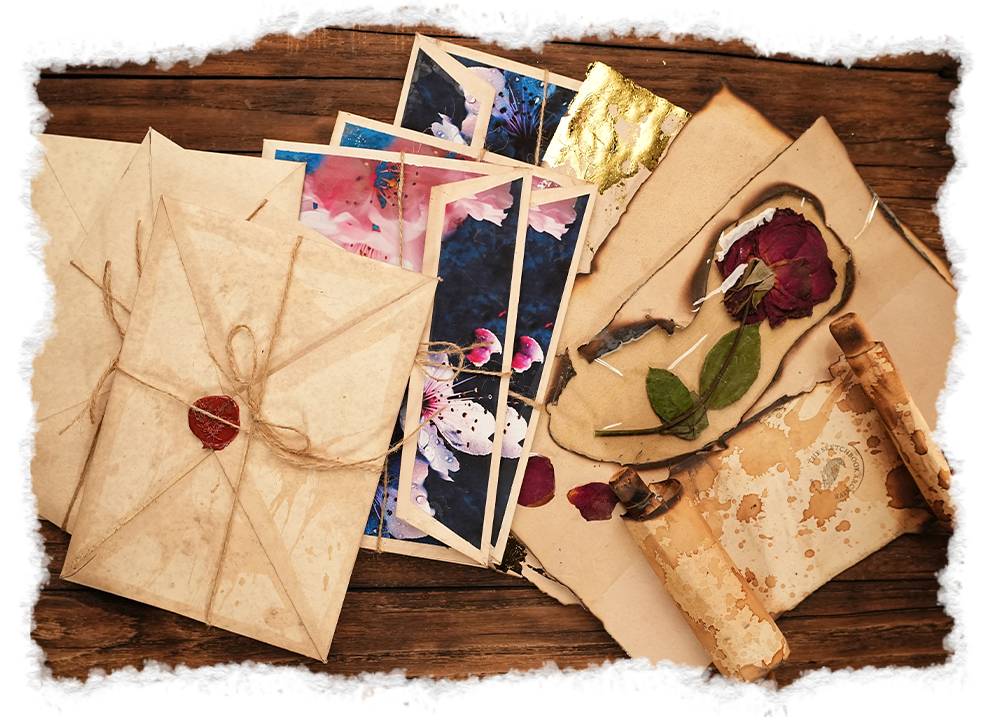 A curated collection of handcrafted items like vintage letters, envelopes, bookmarks, birthday cards, and keychains, adding a personal touch to your journaling experience.