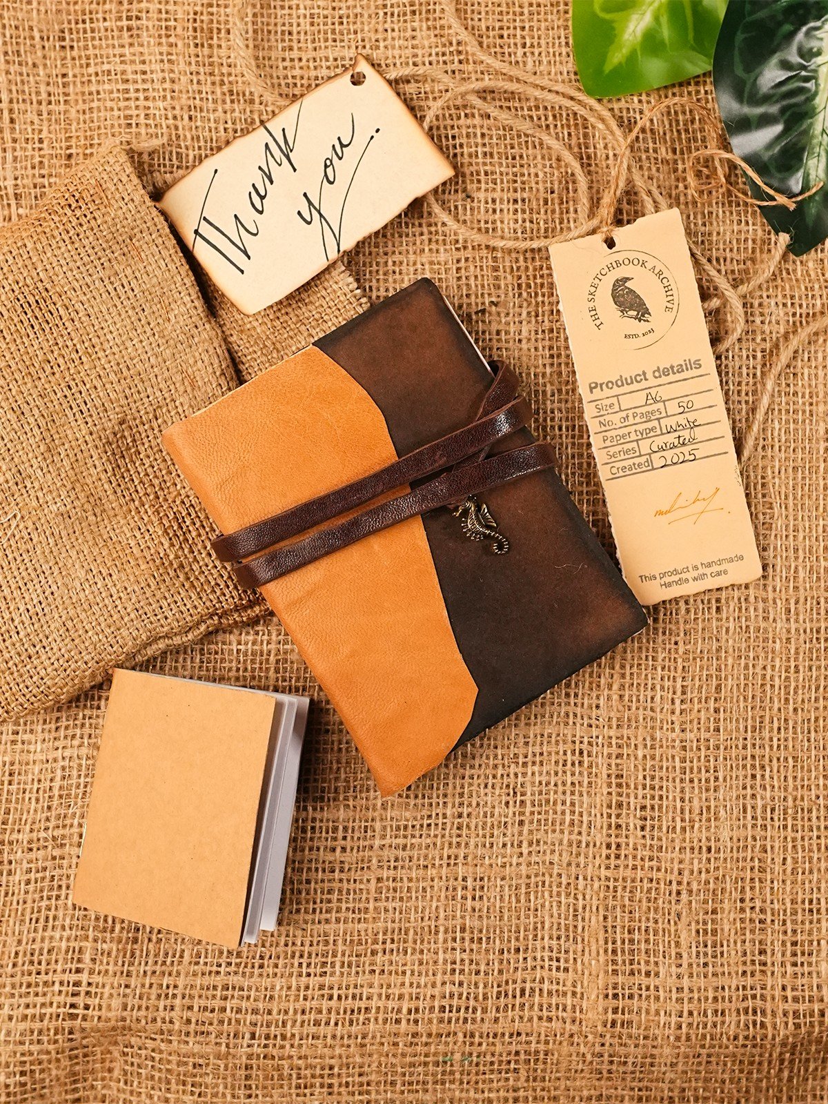 Inside, you’ll find 50 pages of 150 GSM white paper, each with rough edges that give the journal a vintage, handmade feel. The thread binding ensures durability, while the natural materials used in the cover provide a timeless look and feel. Perfect for creatives, writers, or anyone who appreciates the art of handcrafted stationery, this journal brings warmth and character to your collection.