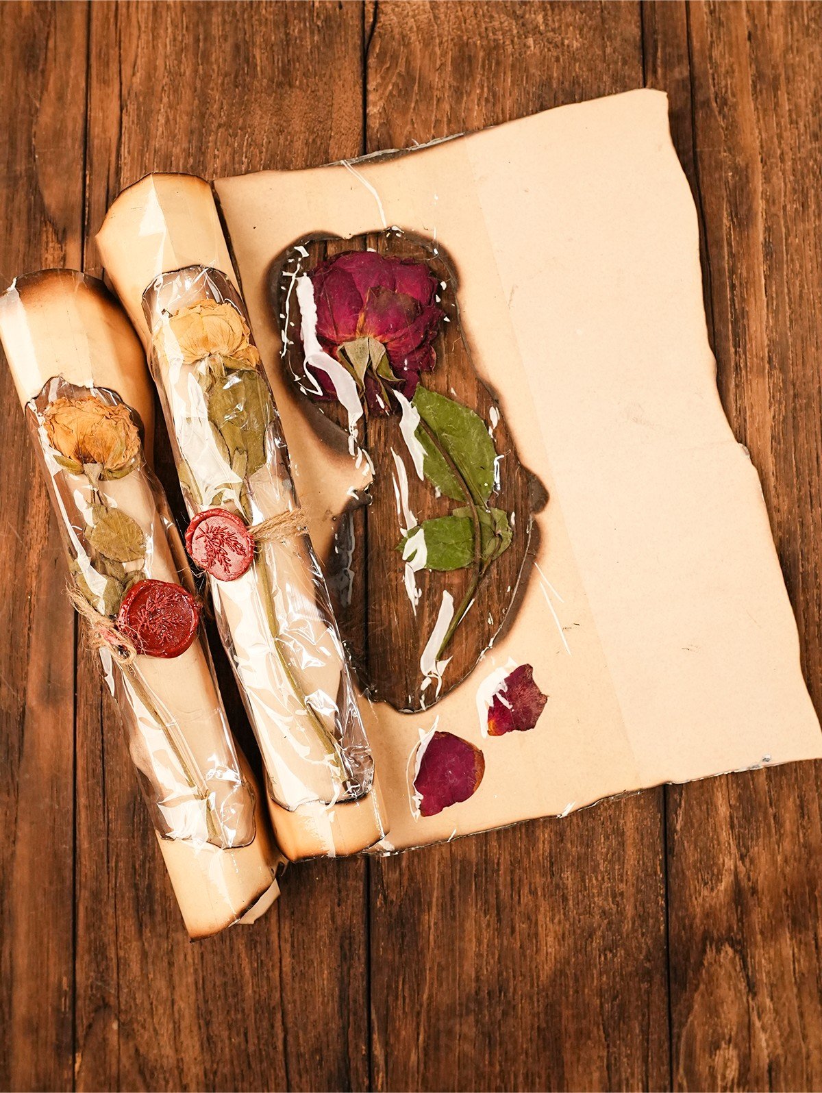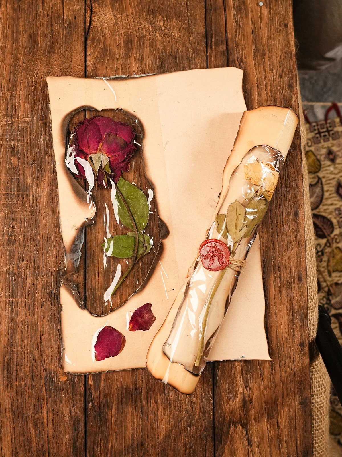 Add a touch of romance and elegance with Vintage Rose Letters. Crafted on A4-sized 150 GSM paper, each sheet is stained and burnt to achieve a beautifully aged look. A natural dried rose flower adorns the design, giving it a timeless, nostalgic appeal. Perfect for special occasions or as a personal gift, these letters offer a unique blend of nature and artistry.