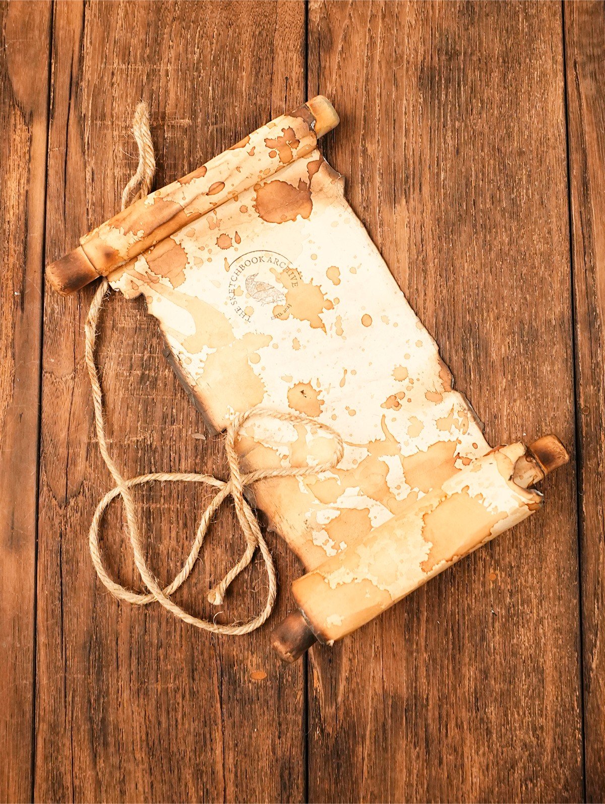 Paper: 150 GSM, stained and burnt for a vintage look